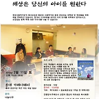 | [신청]2월 청년사회적기업가 독서토론모임(주제도서:세상은 당신의 아이를 원한다) (0) | 2012.02.03 |