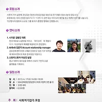 | [사회적기업가포럼]시지온 김범진 대표, 에어비앤비 김은지 님, 스토리스토어 이상진 실장 등 (0) | 2013.04.03 |